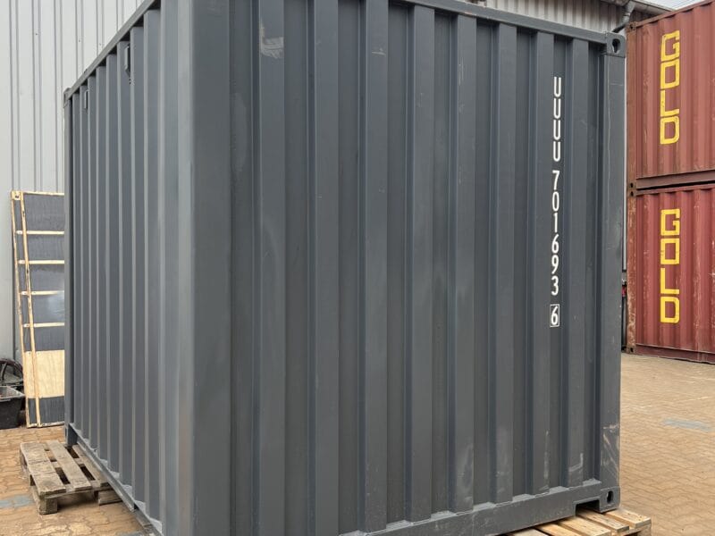 Optimiza tu espacio con este contenedor marítimo de 10 pies en color gris antracita RAL 7016, ideal para almacenamiento seguro en obras, empresas, fincas o uso particular. Su tamaño compacto de 3 metros lo convierte en la opción perfecta para lugares con espacio limitado.